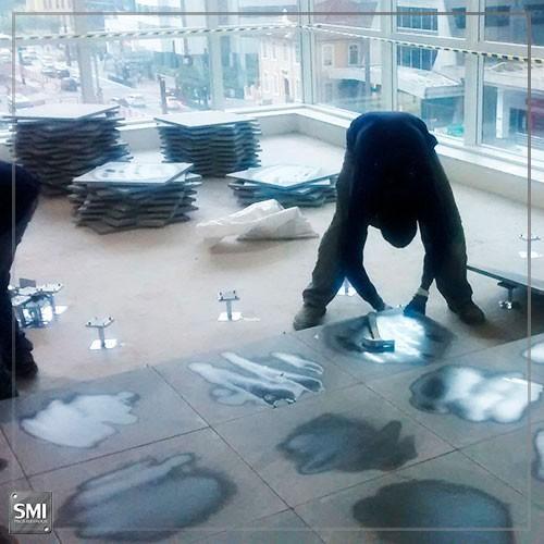 As placas são encaixadas sobre pedestais que deixam um vão no qual componentes como tubulações, cabeamentos, aparelhos, entre outros itens f...